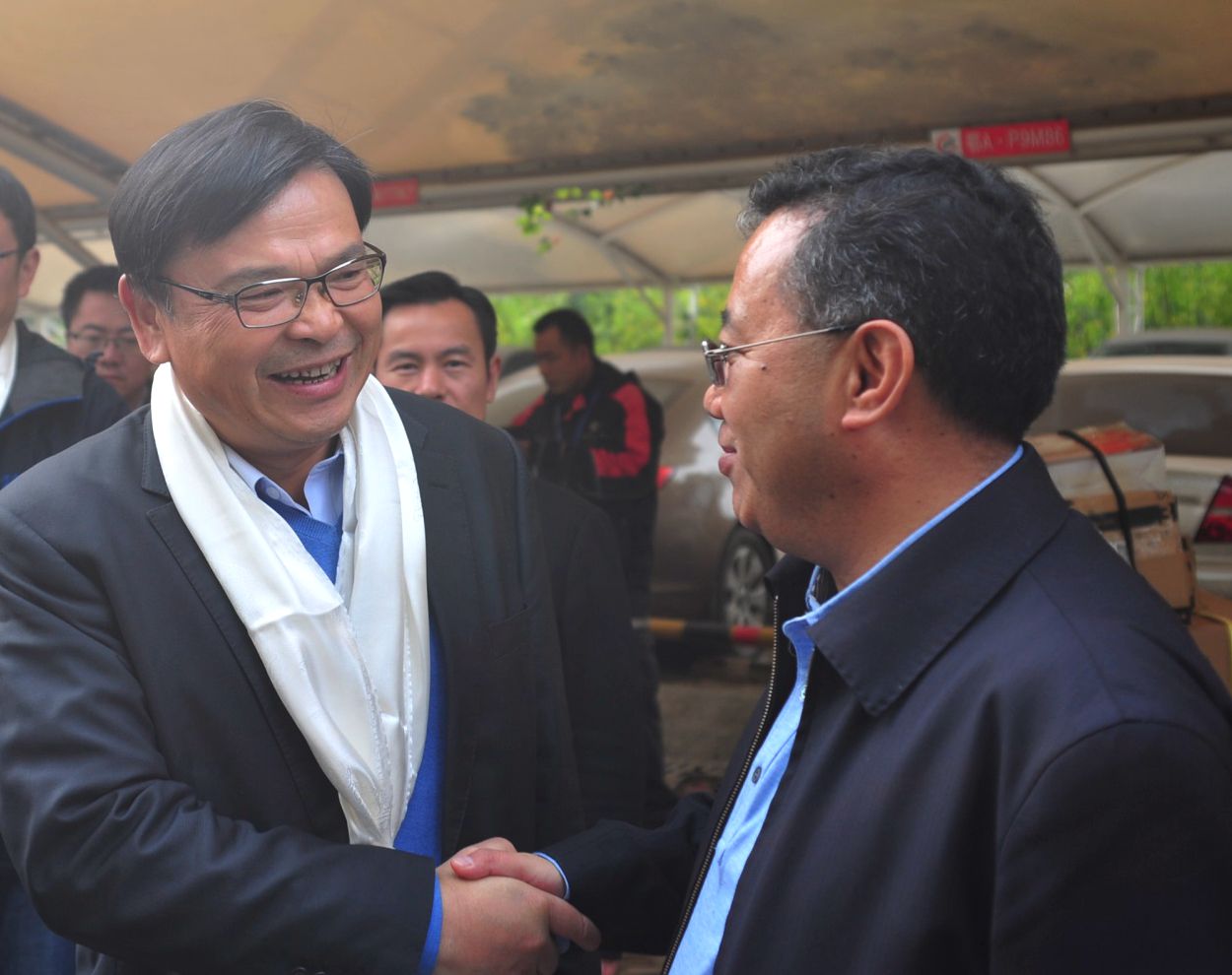 普布頓珠市長(cháng)向李葉青總裁敬獻哈達并親切握手